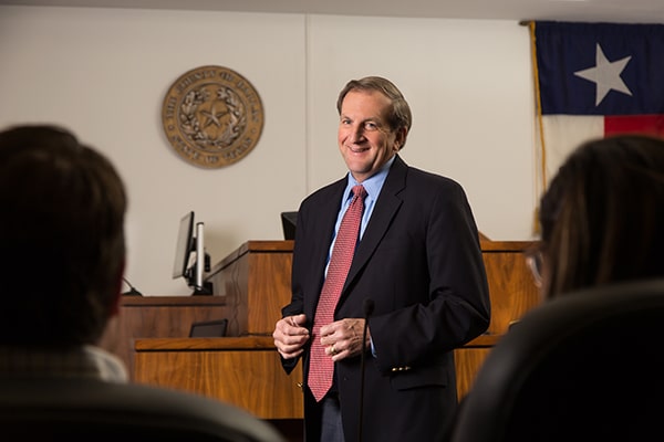 Roy was taking notes inside of the George Allen Dallas County Civil Courthouse when he dropped his notepad. He recalls struggling to pick it up. Another lawyer recognized something was wrong and alerted the judge. Everyone joined in to help Roy.